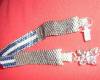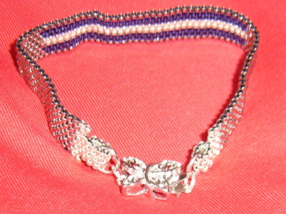 Pulsera de miyuki en plateado, plata vieja y azul con cierre de mariposa.