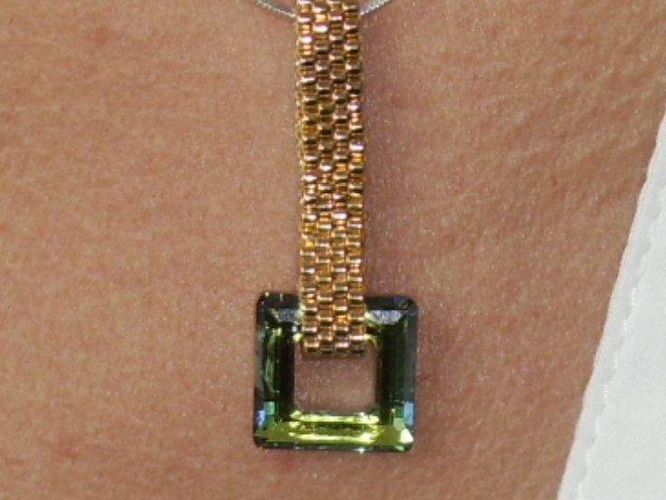 Colgante de miyuki de Oro 24 k y ventana de cristal swaroski.