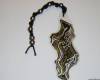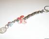 Llavero de cuero marron, con cuentas y acesorios de metal de color oro viejo.