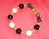 PULSERA de GOLDFIELD de perlas de cristal negras y blancas, con cierre dorado y lazo.