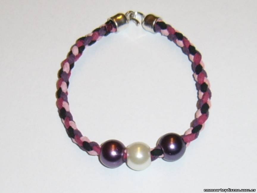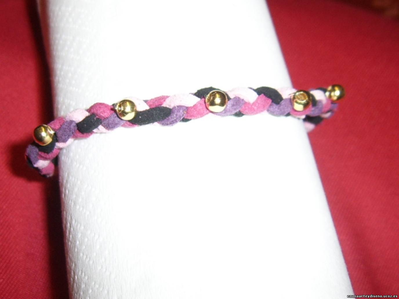 PULSERA de antelina 4 cabos trenza redonda y bolas.