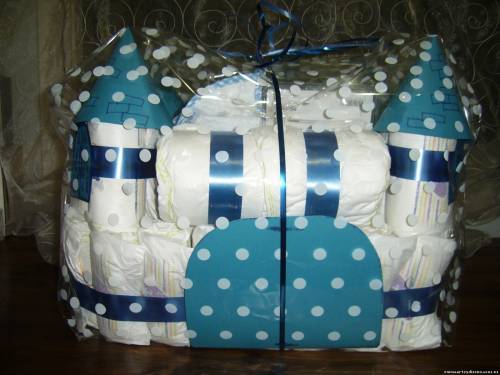 Castillo de pañales utilizables + Accesorios para el bebe en el castillo de pañales.