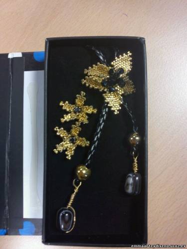 COLLAR DE MIYUKI DE ORO CON ROCALLA Y TUPIS DE SWARODKI+ALAMBRE DE GOLDFIELD, 75€