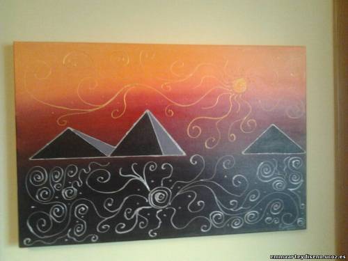 Cuadro Atardeceregipcio, en acrilico y con relieve 60x40