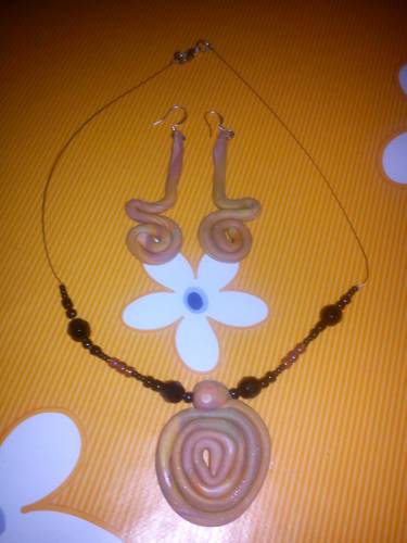 Collar de fimo y cristal swaroski y pendientes hechos con fimo.