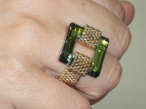 Anillo de miyuki de Oro 24 k y ventana de cristal swaroski.