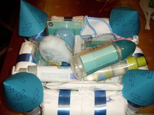 Castillo de pañales utilizables + Accesorios para el bebe en el castillo de pañales.