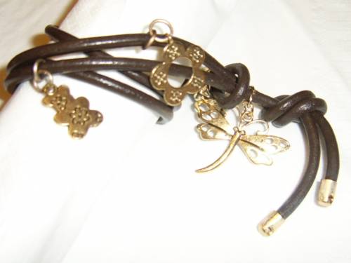Pulsera de cuero de 2 vueltas y piezas doradas.