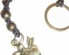 Llavero de Antelina gris, con cuentas y acesorios de metal.