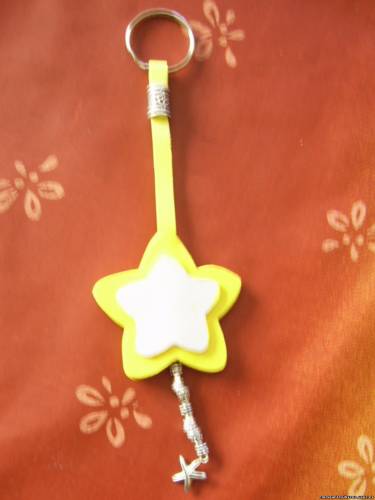 LLAVERO ESTRELLA DE GOMA EVA, CON PIEZAS METALICAS.