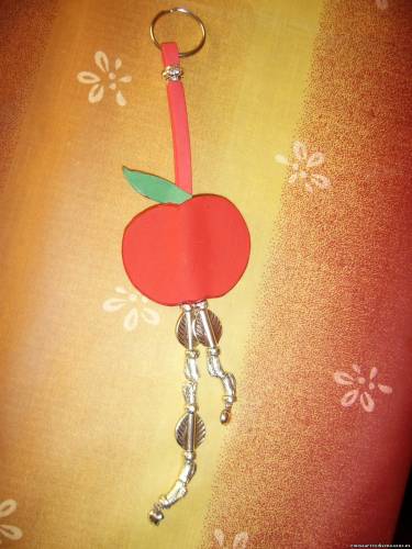 LLAVERO MANZANA DE GOMA EVA, CON PIEZAS METALICAS.