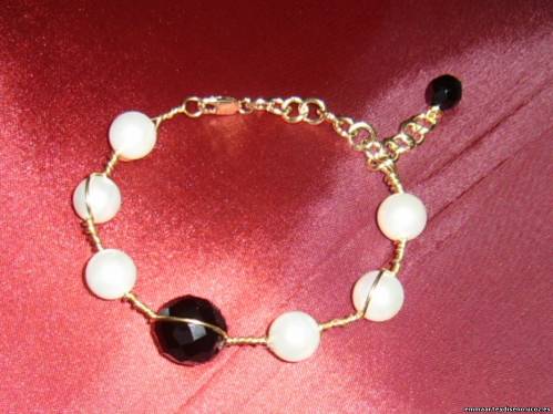 PULSERA de GOLDFIELD y Facetada negra de Cristal de Swaroski y bolas blancas, con cierre de oro + colgante de goldfield y facetada de swaroski.