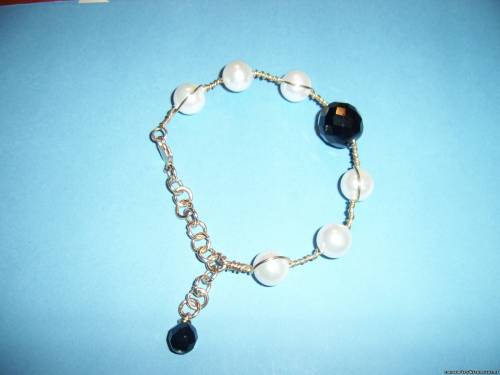 PULSERA de GOLDFIELD y Facetada negra de Cristal de Swaroski y bolas blancas, con cierre de oro + colgante de goldfield y facetada de swaroski.